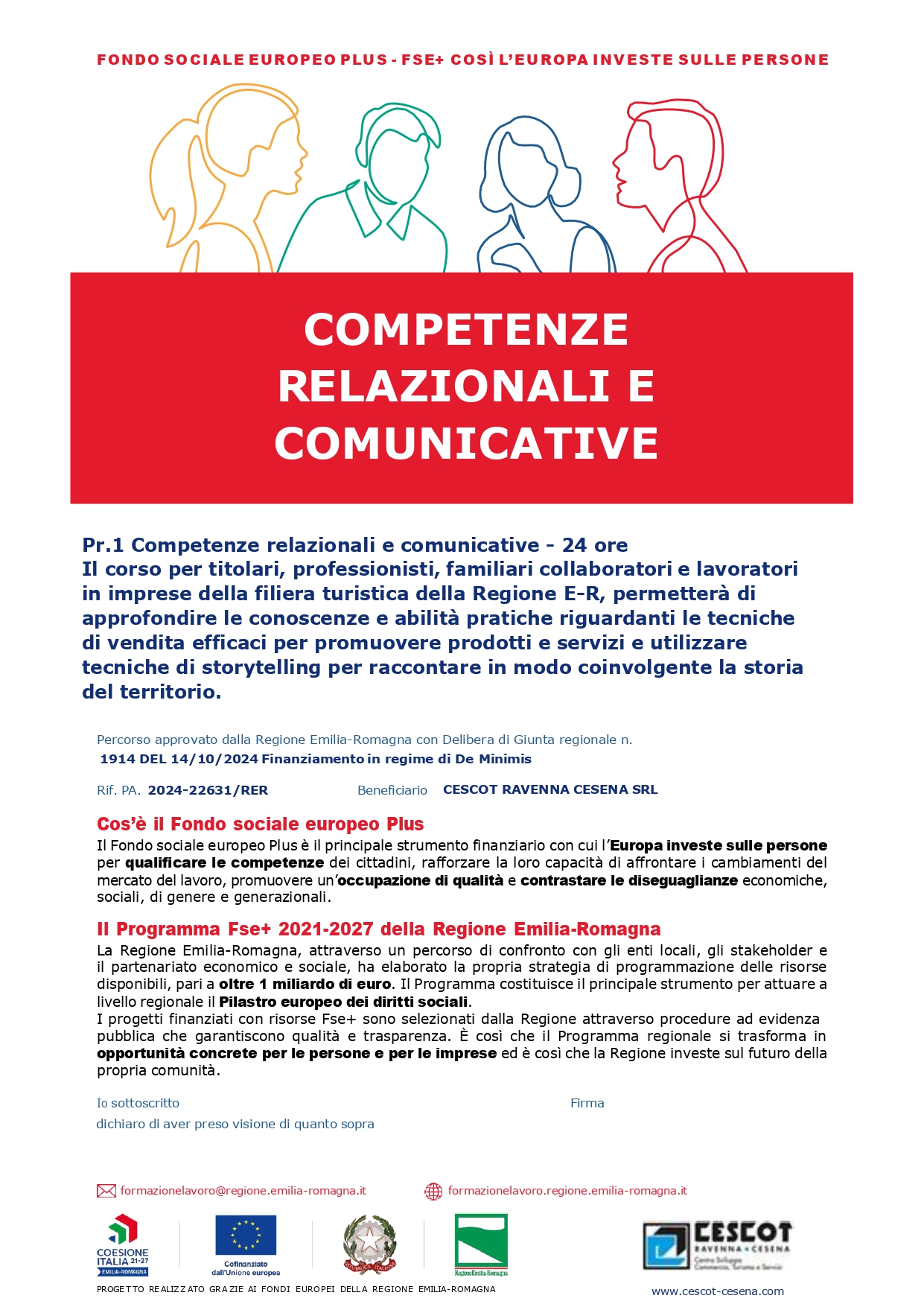 Operazione Rif PA 2024-22631/RER approvata con DGR n.1914 del 14/10/2024 e cofinanziata dal Fondo sociale europeo Programma FSE Plus 2021-2027 della Regione Emilia-Romagna, in regime De Minimis ai sensi del Regolamento UE vigente.